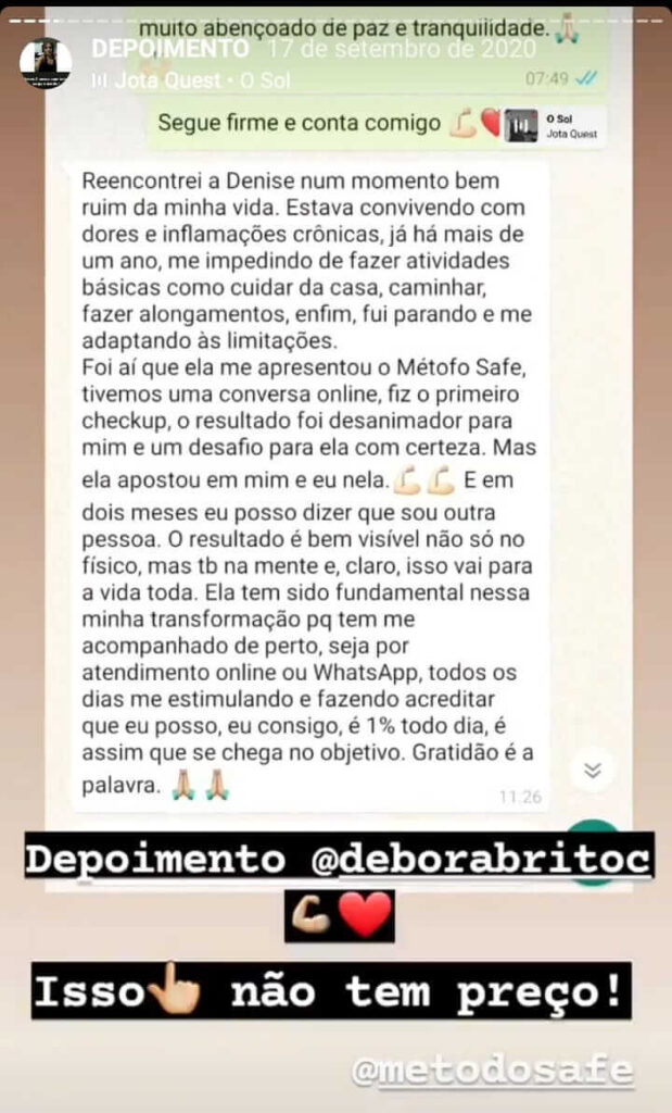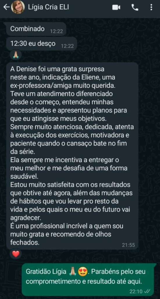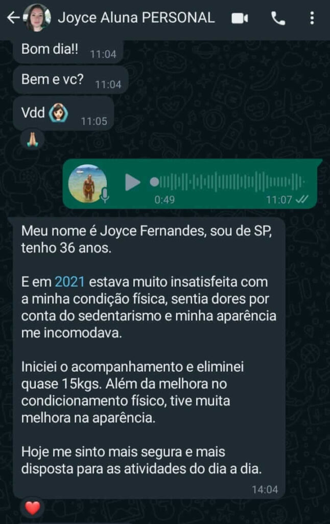 Ensino minhas alunas com meu plano de treinamento à chegarem na sua meta de perda de peso sem neura, trabalhando não apenas a parte física mais também alivio de dores, inflamações, redução e controle do estresse/ ansiedade, melhora do sono, distúrbios do sono, apneia do sono, compulsão alimentar, depressão, e problemas relacionados ao emocional, com intuito de resgatar sua autoestima e amor próprio.